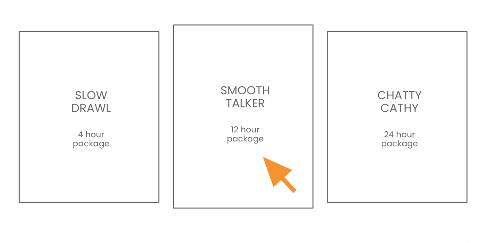 So we have three different packages for you to choose from: 4, 12, and 24 hour increments. The more hours, the faster you learn. Plus, the hourly rate goes down!